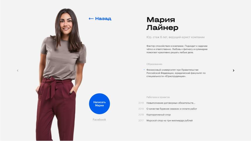 When viewing the portfolio of each lawyer, you can get the details about their experience, education and won cases. If users find a similar legal case, they quickly convert into customers.